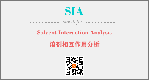 上述内容是“Solvent Interaction Analysis”作为“SIA”的缩写,解释为“溶剂相互作用分析”时的信息,以及英文缩略词SIA所代表的英文单词,其对应的中文拼音、详细解释以及在英文中的流行度和相关分类、应用领域及应用示例等。