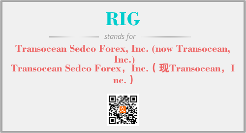 上述内容是“Transocean Sedco Forex, Inc. (now Transocean, Inc.)”作为“RIG”的缩写,解释为“Transocean Sedco Forex,Inc.(现Transocean,Inc.)”时的信息,以及英文缩略词RIG所代表的英文单词,其对应的中文拼音、详细解释以及在英文中的流行度和相关分类、应用领域及应用示例等。