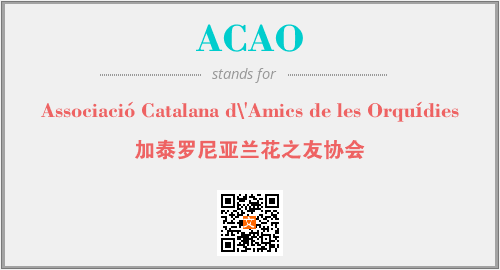 英文缩略词“ACAO”经常作为“Associació Catalana d\'Amics de les Orquídies”的英文缩写来使用,中文表示:“加泰罗尼亚兰花之友协会”。本文将详细介绍英文缩写词ACAO所代表英文单词,其对应的中文拼音、详细解释以及在英语中的流行度。此外,还有关于缩略词ACAO的分类、应用领域及相关应用示例等。