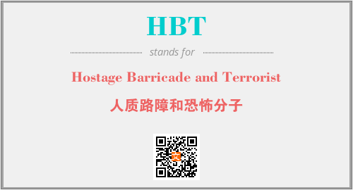 上述内容是“Hostage Barricade and Terrorist”作为“HBT”的缩写,解释为“人质路障和恐怖分子”时的信息,以及英文缩略词HBT所代表的英文单词,其对应的中文拼音、详细解释以及在英文中的流行度和相关分类、应用领域及应用示例等。