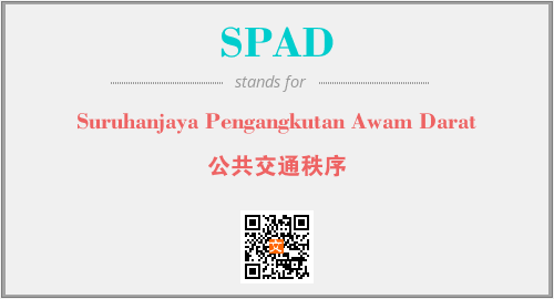 英文缩略词“SPAD”经常作为“Suruhanjaya Pengangkutan Awam Darat”的英文缩写来使用,中文表示:“公共交通秩序”。本文将详细介绍英文缩写词SPAD所代表英文单词,其对应的中文拼音、详细解释以及在英语中的流行度。此外,还有关于缩略词SPAD的分类、应用领域及相关应用示例等。