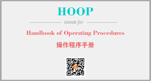 上述内容是“Handbook of Operating Procedures”作为“HOOP”的缩写,解释为“操作程序手册”时的信息,以及英文缩略词HOOP所代表的英文单词,其对应的中文拼音、详细解释以及在英文中的流行度和相关分类、应用领域及应用示例等。