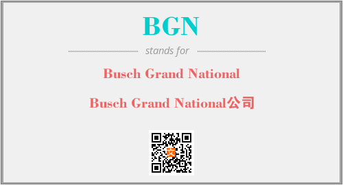 英文缩略词“BGN”经常作为“Busch Grand National”的英文缩写来使用,中文表示:“Busch Grand National公司”。本文将详细介绍英文缩写词BGN所代表英文单词,其对应的中文拼音、详细解释以及在英语中的流行度。此外,还有关于缩略词BGN的分类、应用领域及相关应用示例等。