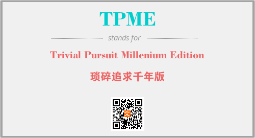 以上为Trivial Pursuit Millenium Edition英文缩略词TPME的中文解释,以及该英文缩写在英语的流行度、分类和应用领域方面的信息。
