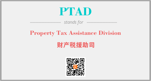 英文缩略词“PTAD”经常作为“Property Tax Assistance Division”的英文缩写来使用,中文表示:“财产税援助司”。本文将详细介绍英文缩写词PTAD所代表英文单词,其对应的中文拼音、详细解释以及在英语中的流行度。此外,还有关于缩略词PTAD的分类、应用领域及相关应用示例等。