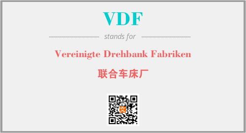 上述内容是“Vereinigte Drehbank Fabriken”作为“VDF”的缩写,解释为“联合车床厂”时的信息,以及英文缩略词VDF所代表的英文单词,其对应的中文拼音、详细解释以及在英文中的流行度和相关分类、应用领域及应用示例等。