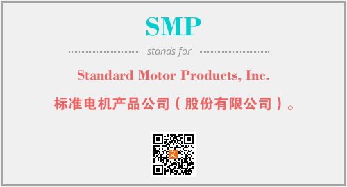 上述内容是“Standard Motor Products, Inc.”作为“SMP”的缩写,解释为“标准电机产品公司(股份有限公司)。”时的信息,以及英文缩略词SMP所代表的英文单词,其对应的中文拼音、详细解释以及在英文中的流行度和相关分类、应用领域及应用示例等。