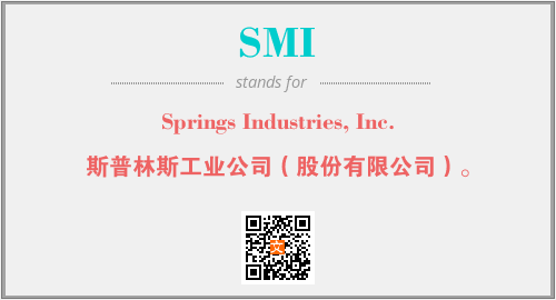 上述内容是“Springs Industries, Inc.”作为“SMI”的缩写,解释为“斯普林斯工业公司(股份有限公司)。”时的信息,以及英文缩略词SMI所代表的英文单词,其对应的中文拼音、详细解释以及在英文中的流行度和相关分类、应用领域及应用示例等。