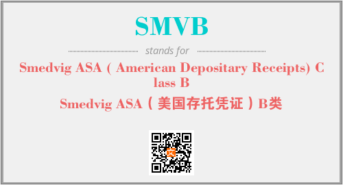 上述内容是“Smedvig ASA ( American Depositary Receipts) Class B”作为“SMVB”的缩写,解释为“Smedvig ASA(美国存托凭证)B类”时的信息,以及英文缩略词SMVB所代表的英文单词,其对应的中文拼音、详细解释以及在英文中的流行度和相关分类、应用领域及应用示例等。