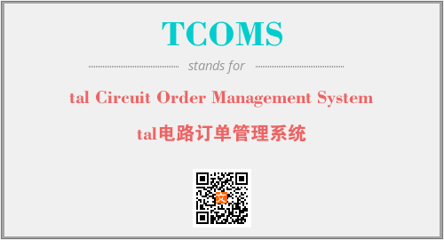上述内容是“tal Circuit Order Management System”作为“TCOMS”的缩写,解释为“tal电路订单管理系统”时的信息,以及英文缩略词TCOMS所代表的英文单词,其对应的中文拼音、详细解释以及在英文中的流行度和相关分类、应用领域及应用示例等。