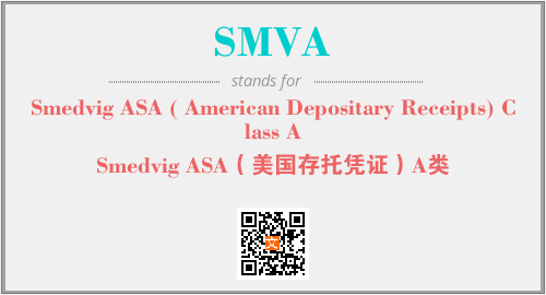 上述内容是“Smedvig ASA ( American Depositary Receipts) Class A”作为“SMVA”的缩写,解释为“Smedvig ASA(美国存托凭证)A类”时的信息,以及英文缩略词SMVA所代表的英文单词,其对应的中文拼音、详细解释以及在英文中的流行度和相关分类、应用领域及应用示例等。