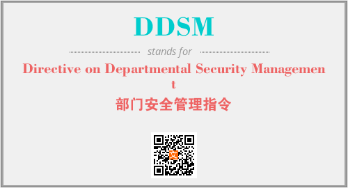 英文缩略词“DDSM”经常作为“Directive on Departmental Security Management”的英文缩写来使用,中文表示:“部门安全管理指令”。本文将详细介绍英文缩写词DDSM所代表英文单词,其对应的中文拼音、详细解释以及在英语中的流行度。此外,还有关于缩略词DDSM的分类、应用领域及相关应用示例等。