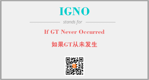 上述内容是“If GT Never Occurred”作为“IGNO”的缩写,解释为“如果GT从未发生”时的信息,以及英文缩略词IGNO所代表的英文单词,其对应的中文拼音、详细解释以及在英文中的流行度和相关分类、应用领域及应用示例等。