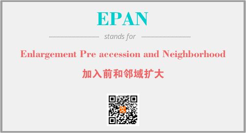 上述内容是“Enlargement Pre accession and Neighborhood”作为“EPAN”的缩写,解释为“加入前和邻域扩大”时的信息,以及英文缩略词EPAN所代表的英文单词,其对应的中文拼音、详细解释以及在英文中的流行度和相关分类、应用领域及应用示例等。