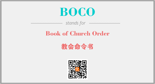 上述内容是“Book of Church Order”作为“BOCO”的缩写,解释为“教会命令书”时的信息,以及英文缩略词BOCO所代表的英文单词,其对应的中文拼音、详细解释以及在英文中的流行度和相关分类、应用领域及应用示例等。