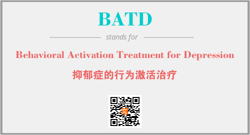 英文缩略词“BATD”经常作为“Behavioral Activation Treatment for Depression”的英文缩写来使用,中文表示:“抑郁症的行为激活治疗”。本文将详细介绍英文缩写词BATD所代表英文单词,其对应的中文拼音、详细解释以及在英语中的流行度。此外,还有关于缩略词BATD的分类、应用领域及相关应用示例等。