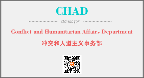 上述内容是“Conflict and Humanitarian Affairs Department”作为“CHAD”的缩写,解释为“冲突和人道主义事务部”时的信息,以及英文缩略词CHAD所代表的英文单词,其对应的中文拼音、详细解释以及在英文中的流行度和相关分类、应用领域及应用示例等。