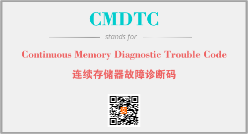英文缩略词“CMDTC”经常作为“Continuous Memory Diagnostic Trouble Code”的英文缩写来使用,中文表示:“连续存储器故障诊断码”。本文将详细介绍英文缩写词CMDTC所代表英文单词,其对应的中文拼音、详细解释以及在英语中的流行度。此外,还有关于缩略词CMDTC的分类、应用领域及相关应用示例等。