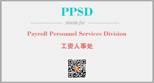 上述内容是“Payroll Personnel Services Division”作为“PPSD”的缩写,解释为“工资人事处”时的信息,以及英文缩略词PPSD所代表的英文单词,其对应的中文拼音、详细解释以及在英文中的流行度和相关分类、应用领域及应用示例等。