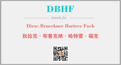 上述内容是“Dirac Brueckner Hartree Fock”作为“DBHF”的缩写,解释为“狄拉克·布鲁克纳·哈特雷·福克”时的信息,以及英文缩略词DBHF所代表的英文单词,其对应的中文拼音、详细解释以及在英文中的流行度和相关分类、应用领域及应用示例等。