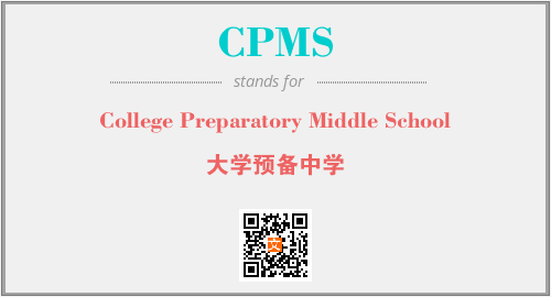 英文缩略词“CPMS”经常作为“College Preparatory Middle School”的英文缩写来使用,中文表示:“大学预备中学”。本文将详细介绍英文缩写词CPMS所代表英文单词,其对应的中文拼音、详细解释以及在英语中的流行度。此外,还有关于缩略词CPMS的分类、应用领域及相关应用示例等。