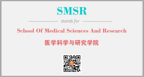 上述内容是“School Of Medical Sciences And Research”作为“SMSR”的缩写,解释为“医学科学与研究学院”时的信息,以及英文缩略词SMSR所代表的英文单词,其对应的中文拼音、详细解释以及在英文中的流行度和相关分类、应用领域及应用示例等。