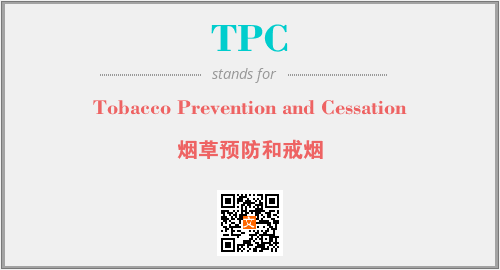 上述内容是“Tobacco Prevention and Cessation”作为“TPC”的缩写,解释为“烟草预防和戒烟”时的信息,以及英文缩略词TPC所代表的英文单词,其对应的中文拼音、详细解释以及在英文中的流行度和相关分类、应用领域及应用示例等。