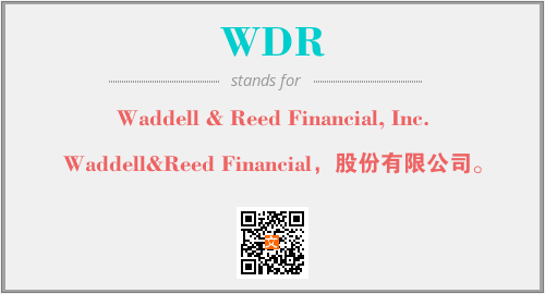 上述内容是“Waddell & Reed Financial, Inc.”作为“WDR”的缩写,解释为“Waddell&Reed Financial,股份有限公司。”时的信息,以及英文缩略词WDR所代表的英文单词,其对应的中文拼音、详细解释以及在英文中的流行度和相关分类、应用领域及应用示例等。