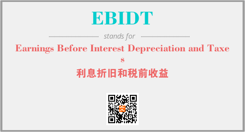 上述内容是“Earnings Before Interest Depreciation and Taxes”作为“EBIDT”的缩写,解释为“利息折旧和税前收益”时的信息,以及英文缩略词EBIDT所代表的英文单词,其对应的中文拼音、详细解释以及在英文中的流行度和相关分类、应用领域及应用示例等。