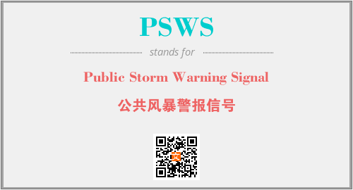 上述内容是“Public Storm Warning Signal”作为“PSWS”的缩写,解释为“公共风暴警报信号”时的信息,以及英文缩略词PSWS所代表的英文单词,其对应的中文拼音、详细解释以及在英文中的流行度和相关分类、应用领域及应用示例等。
