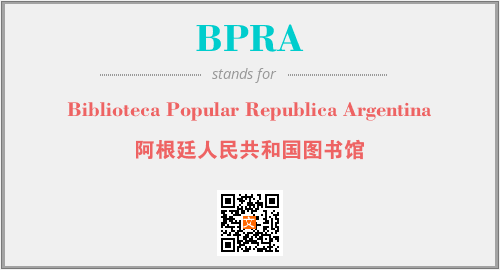 以上为Biblioteca Popular Republica Argentina英文缩略词BPRA的中文解释,以及该英文缩写在英语的流行度、分类和应用领域方面的信息。