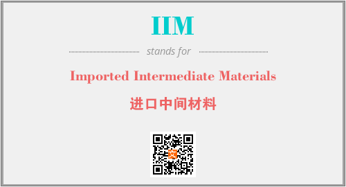 上述内容是“Imported Intermediate Materials”作为“IIM”的缩写,解释为“进口中间材料”时的信息,以及英文缩略词IIM所代表的英文单词,其对应的中文拼音、详细解释以及在英文中的流行度和相关分类、应用领域及应用示例等。