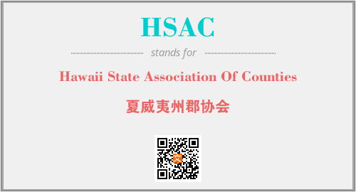 上述内容是“Hawaii State Association Of Counties”作为“HSAC”的缩写,解释为“夏威夷州郡协会”时的信息,以及英文缩略词HSAC所代表的英文单词,其对应的中文拼音、详细解释以及在英文中的流行度和相关分类、应用领域及应用示例等。