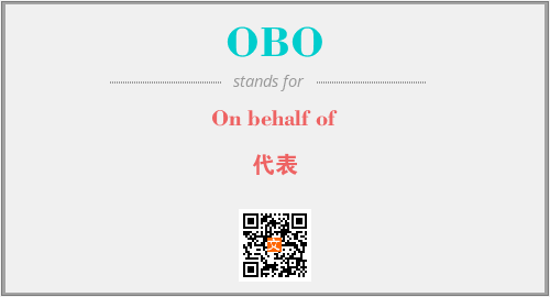 上述内容是“On behalf of”作为“OBO”的缩写,解释为“代表”时的信息,以及英文缩略词OBO所代表的英文单词,其对应的中文拼音、详细解释以及在英文中的流行度和相关分类、应用领域及应用示例等。