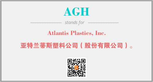 上述内容是“Atlantis Plastics, Inc.”作为“AGH”的缩写,解释为“亚特兰蒂斯塑料公司(股份有限公司)。”时的信息,以及英文缩略词AGH所代表的英文单词,其对应的中文拼音、详细解释以及在英文中的流行度和相关分类、应用领域及应用示例等。