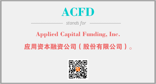 上述内容是“Applied Capital Funding, Inc.”作为“ACFD”的缩写,解释为“应用资本融资公司(股份有限公司)。”时的信息,以及英文缩略词ACFD所代表的英文单词,其对应的中文拼音、详细解释以及在英文中的流行度和相关分类、应用领域及应用示例等。