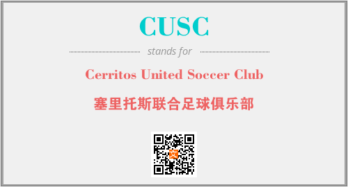 上述内容是“Cerritos United Soccer Club”作为“CUSC”的缩写,解释为“塞里托斯联合足球俱乐部”时的信息,以及英文缩略词CUSC所代表的英文单词,其对应的中文拼音、详细解释以及在英文中的流行度和相关分类、应用领域及应用示例等。