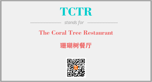 以上为The Coral Tree Restaurant英文缩略词TCTR的中文解释,以及该英文缩写在英语的流行度、分类和应用领域方面的信息。