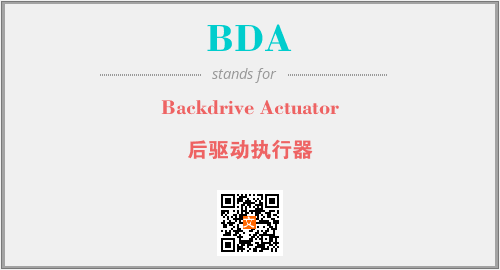 上述内容是“Backdrive Actuator”作为“BDA”的缩写,解释为“后驱动执行器”时的信息,以及英文缩略词BDA所代表的英文单词,其对应的中文拼音、详细解释以及在英文中的流行度和相关分类、应用领域及应用示例等。