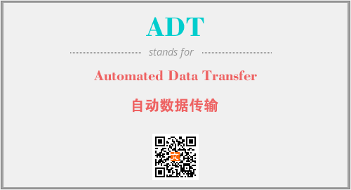 英文缩略词“ADT”经常作为“Automated Data Transfer”的英文缩写来使用,中文表示:“自动数据传输”。本文将详细介绍英文缩写词ADT所代表英文单词,其对应的中文拼音、详细解释以及在英语中的流行度。此外,还有关于缩略词ADT的分类、应用领域及相关应用示例等。