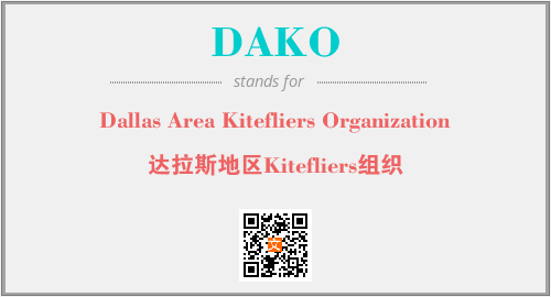 上述内容是“Dallas Area Kitefliers Organization”作为“DAKO”的缩写,解释为“达拉斯地区Kitefliers组织”时的信息,以及英文缩略词DAKO所代表的英文单词,其对应的中文拼音、详细解释以及在英文中的流行度和相关分类、应用领域及应用示例等。