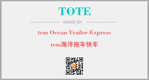 英文缩略词“TOTE”经常作为“tem Ocean Trailer Express”的英文缩写来使用,中文表示:“tem海洋拖车快车”。本文将详细介绍英文缩写词TOTE所代表英文单词,其对应的中文拼音、详细解释以及在英语中的流行度。此外,还有关于缩略词TOTE的分类、应用领域及相关应用示例等。