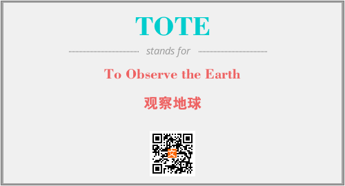 英文缩略词“TOTE”经常作为“To Observe the Earth”的英文缩写来使用,中文表示:“观察地球”。本文将详细介绍英文缩写词TOTE所代表英文单词,其对应的中文拼音、详细解释以及在英语中的流行度。此外,还有关于缩略词TOTE的分类、应用领域及相关应用示例等。