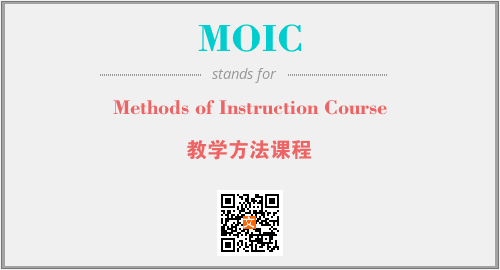 上述内容是“Methods of Instruction Course”作为“MOIC”的缩写,解释为“教学方法课程”时的信息,以及英文缩略词MOIC所代表的英文单词,其对应的中文拼音、详细解释以及在英文中的流行度和相关分类、应用领域及应用示例等。