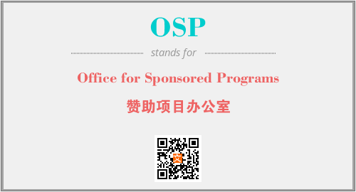 英文缩略词“OSP”经常作为“Office for Sponsored Programs”的英文缩写来使用,中文表示:“赞助项目办公室”。本文将详细介绍英文缩写词OSP所代表英文单词,其对应的中文拼音、详细解释以及在英语中的流行度。此外,还有关于缩略词OSP的分类、应用领域及相关应用示例等。