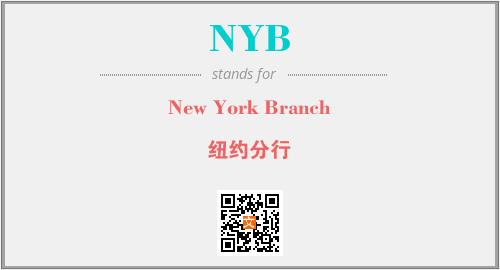 上述内容是“New York Branch”作为“NYB”的缩写,解释为“纽约分行”时的信息,以及英文缩略词NYB所代表的英文单词,其对应的中文拼音、详细解释以及在英文中的流行度和相关分类、应用领域及应用示例等。