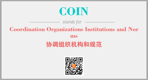 上述内容是“Coordination Organizations Institutions and Norms”作为“COIN”的缩写,解释为“协调组织机构和规范”时的信息,以及英文缩略词COIN所代表的英文单词,其对应的中文拼音、详细解释以及在英文中的流行度和相关分类、应用领域及应用示例等。