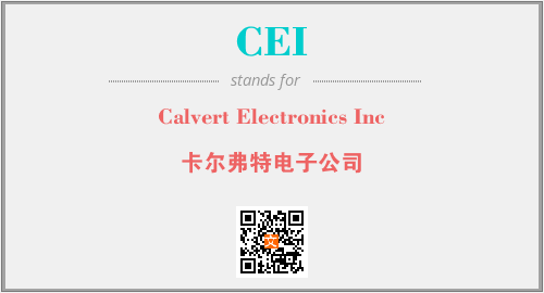 上述内容是“Calvert Electronics Inc”作为“CEI”的缩写,解释为“卡尔弗特电子公司”时的信息,以及英文缩略词CEI所代表的英文单词,其对应的中文拼音、详细解释以及在英文中的流行度和相关分类、应用领域及应用示例等。