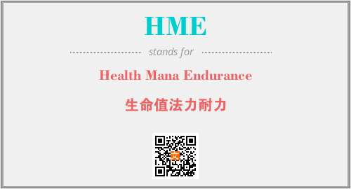 上述内容是“Health Mana Endurance”作为“HME”的缩写,解释为“生命值法力耐力”时的信息,以及英文缩略词HME所代表的英文单词,其对应的中文拼音、详细解释以及在英文中的流行度和相关分类、应用领域及应用示例等。