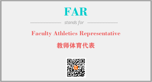 英文缩略词“FAR”经常作为“Faculty Athletics Representative”的英文缩写来使用,中文表示:“教师体育代表”。本文将详细介绍英文缩写词FAR所代表英文单词,其对应的中文拼音、详细解释以及在英语中的流行度。此外,还有关于缩略词FAR的分类、应用领域及相关应用示例等。